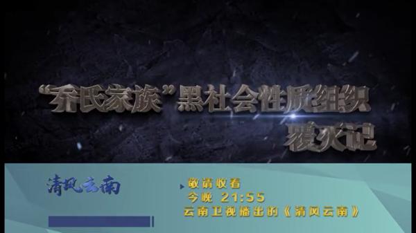 云南省纪委监委官方微信公众号4月5日上午发布预告:云南卫视《清风云南》栏目今晚21:55播出《“乔氏家族”黑社会性质组织覆灭记》。
