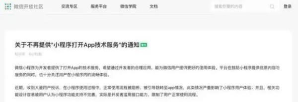 日前,微信开放社区宣布,2021年5月20日之后不再提供“小程序打开app技术服务”。