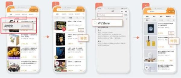这个小程序会引导用户添加带货商品,它既可以引导用户添加高佣金、高销量商品,也可以提供搜索栏让用户自主搜索货源。