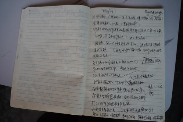 申军良翻看案件二审时自己做的笔记。 王倩 摄