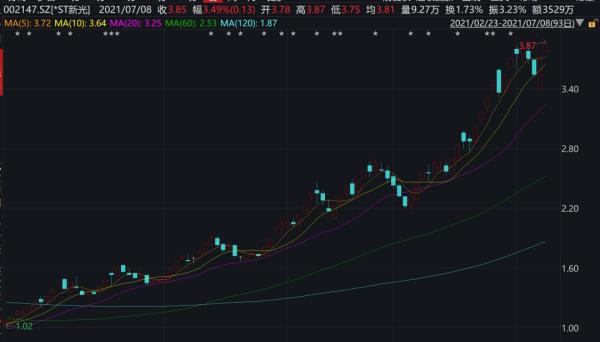 事实上,步入2021年后,*st新光从0.75元/股一路上涨,到目前涨幅超400%。