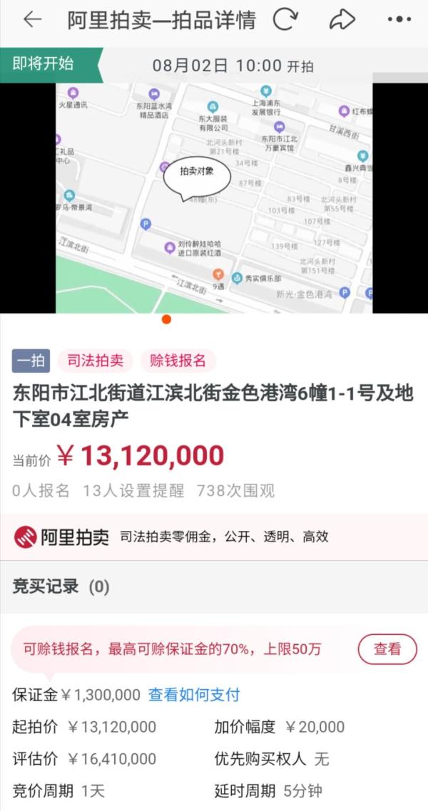 据阿里拍卖信息,自8月2日起,接连4天,浙江省金华市中级人民法院每天都会在阿里拍卖上开拍一套豪宅。