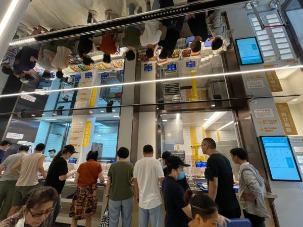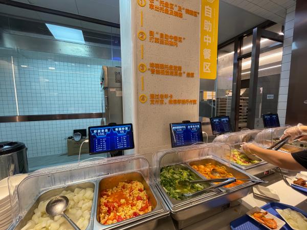 记者注意到,麻雀虽小,但这里五脏俱全,有自助中餐区、自助浇头面档、网订柜取、24小时智能小吃机等四类区域。目前,食堂每小时可提供300余份正餐和150份小吃类餐品,实现了全程数字化管理和无人烹饪。