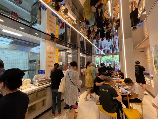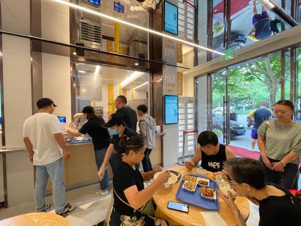 此外,居民通过手机app下单,也可到门店扫码在智慧取餐柜取餐。在早餐时段,“网订柜取”颇受周边白领欢迎。ai食堂不仅提供小馄饨、豆腐花、包子、咖啡、豆浆等20款精选早餐,还引入了绿杨村等沪上“老字号”,中西融合中凸显上海本地特色。