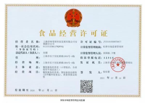 两张创新证照的出炉经过多轮打磨。首先由虹桥街道主动跨前,解决场地选址、电力保障等难题,随后熙香方面提供门店设计图纸,长宁区市场监管局深入研究新模式、新业态的市场准入,根据ai食堂的实际生产、出餐、用餐、清理、排污等环节,逐条研究指导,最终予以颁发食品经营许可证。企业还请来第三方检验公司,检测店内菌落值、产能。“有了上述检验结果,我们才开始施工。” 刘蕴熙说。