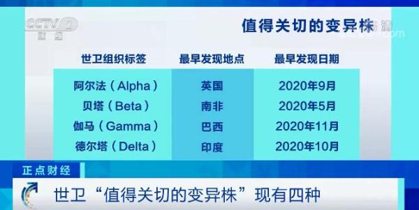 此前,世界卫生组织5月31日宣布,从当日起,把最早在英国、印度等国发现的新冠变异病毒的名称改用希腊字母命名,主要是为了避免对相关国家造成污名化。依照新命名方式,最早在英国发现的b.1.1.7变异病毒改称为alpha变异病毒;最早在南非发现的b.1.351改称为beta变种病毒;最早在巴西发现的p.1改称gamma变种病毒;而最早在印度发现变异病毒有两个分支,须关切变异病毒b.1.617.2改称delta变异病毒,待观察变异病毒b.1.617.1改称kappa变异病毒。