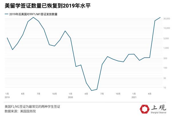 开学在即,8月25日,美国驻华大使馆在微博公布赴美留学签证数据,自5月以来,美国驻华使团向中国留学生签发8.5万张学生签证,这一数字与疫情前2019年数据基本相符,2019年5月-8月签证数量为84898万张。