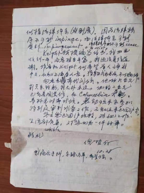 从回信内容还可以看出两人非常熟悉不拘小节。第一,回信没有客套,开门见山,直接点题。比如这个词该怎么翻译,这个句子表示什么意思等。在讲完正事后,才会拉拉家常,通报下近况;第二,按理说两人都是上海老克勒,对礼仪非常熟悉,但他们之间就不大讲究了。高文彬的信有时候就写在文稿纸的背面,而倪征(日奥)更直接,扯下笔记本一页,就开始写了。有一封信还特意关照“勿复”,体现两人的关系非同一般。我们看到高文彬保留的照片,在合影时大多数时候都是在倪先生的身边。