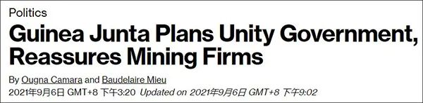 报道还提到,对于外国投资者在几内亚的投资开发活动,杜姆布亚承诺道,“将遵守签订的采矿协议,并会对外国投资给予优惠待遇(favourable treatment)。”
