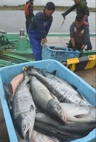 北海道渔民打捞上来的已死亡鲑鱼
