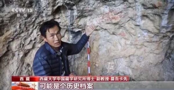 来自西藏大学的古藏文学者夏吾卡先和队员,在2号点发现了用古藏文记录在岩画上的物账记录,这在西藏岩画中第一次发现。