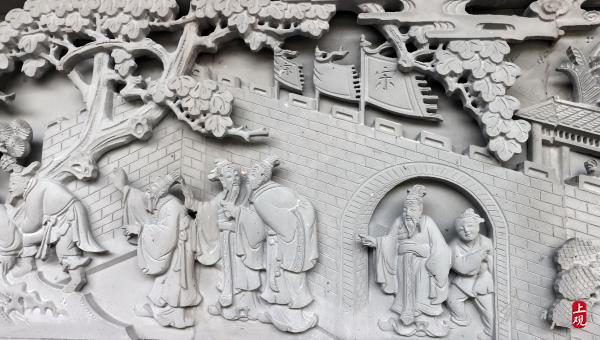 2021年10月13日,一幅长14米的砖雕作品《孔子周游列国》在宝山孔庙大成殿建成。