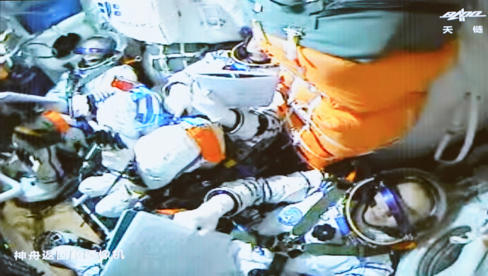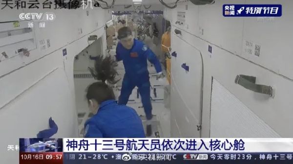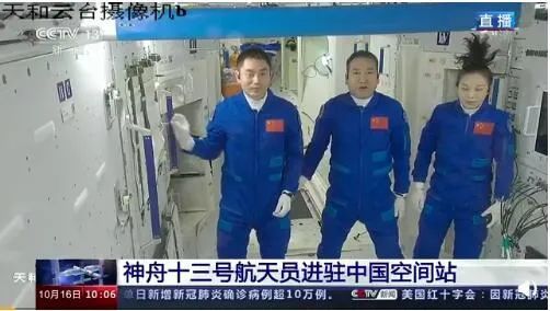 据中国载人航天工程办公室消息,在神舟十三号载人飞船与空间站组合体成功实现自主快速交会对接后,航天员乘组从返回舱进入轨道舱。按程序完成各项工作后,翟志刚开启天和核心舱舱门,北京时间2021年10月16日9时58分,航天员翟志刚、王亚平、叶光富先后进入天和核心舱。 后续,航天员乘组将按计划开展相关工作。