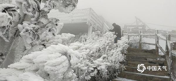 ↑2021年1月8日,广东清远连山金子山景区出现雾凇景观。(图/金子山工作人员)