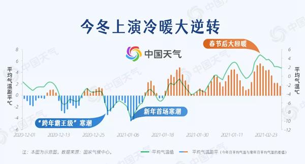 就像绷紧的橡皮筋经历弹性形变后,依然会恢复原来的样子,去年冬天虽然每场过程看气温大起大伏,但平均来看,它的气温异常波动被“抚平”,甚至成了暖冬。所以你看,与其关注气象概念的冷冬或暖冬,普通公众更需关注的是气温异常波动的极端事件。