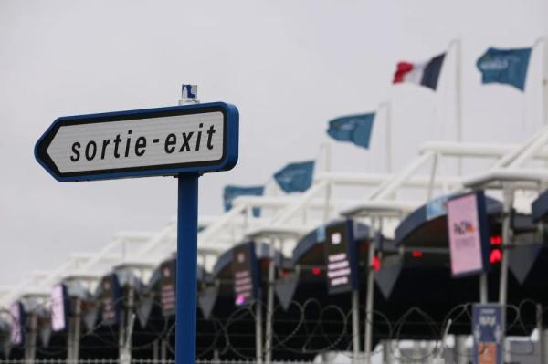 这是2020年1月31日在法国加来港海关检查站前拍摄的“出口”标识。加来位于英吉利海峡最窄处,与英国隔海相望。(新华社记者高静摄)