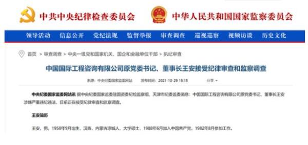 今年10月29日,中央纪委国家监委网站发布消息:中国国际工程咨询有限公司原党委书记、董事长王安涉嫌严重违纪违法,目前正在接受纪律审查和监察调查。在学界,王安的身份是一位中国工程院院士。出生于1958年9月的王安是内蒙古凉城人。据中国工程院官网介绍,2009年,51岁的王安当选中国工程院院士,他是现代煤矿采矿工程专家,长期从事煤炭开发领域的技术研究和工程管理。目前,王安的个人信息网页已在中国工程院网站被撤下。
