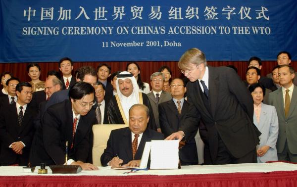 具有历史意义的那天,是2001年11月11日,那份议定书全称是《中国加入世界贸易组织议定书》,代表中国政府签字的是石广生,当时的身份是外经贸部部长。那次签字标志着历经15年漫长而艰苦的谈判后,中国终于迈进世界贸易组织的大门。