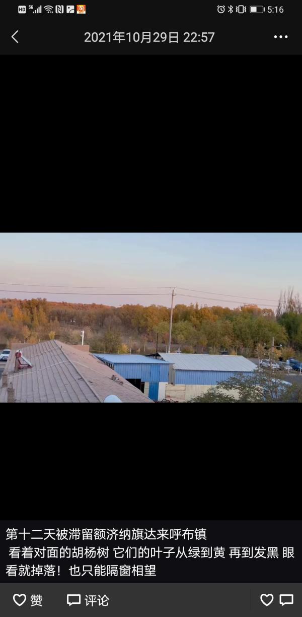 11月以后的这几天,游客们大多已经入住了内蒙古自治区内低风险地区的各个酒店,大家的心绪平复了,开始积极打听着回家的防疫要求。十多天滞留额济纳,缺衣少药的日子会让游客们心有余悸,但是在临走时,不少人说下次还要来好好看看胡杨林。