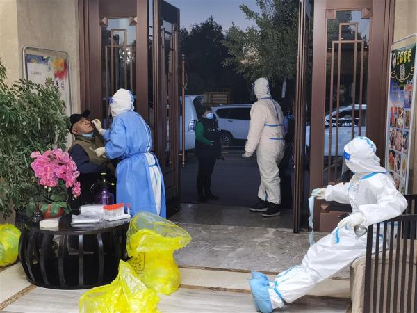 当地医护人员上门为游客做核酸检测。竺暨元 摄