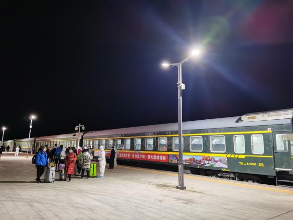 游客们乘坐专列离开额济纳。 竺暨元 摄