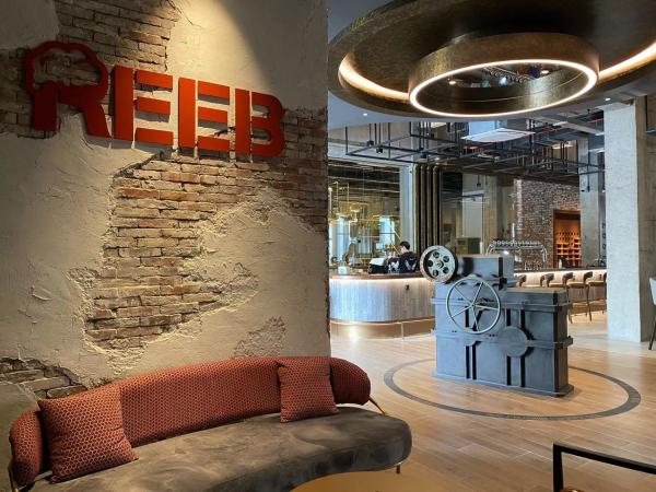 这间精酿餐吧是由过去啤酒厂的锅炉房改造而来,室内外设计还留着力波老厂房的影子,甚至保留了当年的下煤通道。过去的锅炉变速器、水过滤器等原物,如今都成为了艺术装置,体积最大的蒸汽分水器翻了个个,成为了餐吧里最长的一张桌子,而头上的吊灯则改造自煤抓斗。