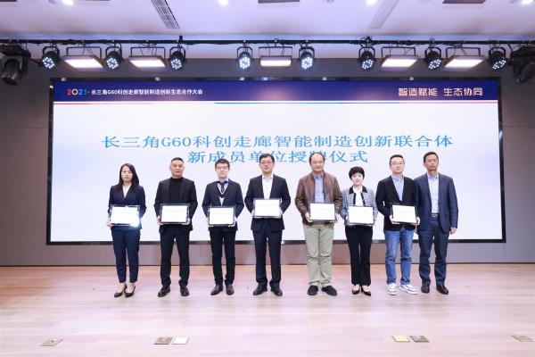 会议现场,一批创新型企业在现场加入长三角g60科创走廊智能制造创新联合体,推动数字化转型,突破行业关键核心技术以及先进技术落地应用,加强创新应用型人才培养,打造智能制造科技创新策源地。