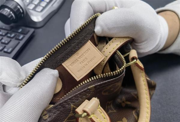 一款lv的双肩包,各方面细节都很完善,可鉴定师用普通手机的微距功能放大其拉链头后,立刻判断:“这是高仿品”。原因在于该拉链头内侧有拉丝,而参考同款产品细节,定制的拉链头内侧相当平滑。再将这款包放在日光灯下不同角度观察,可以发现灰色花纹略微泛粉,也不是真品该有的颜色。