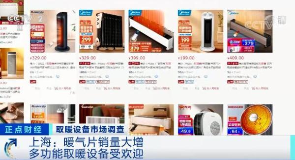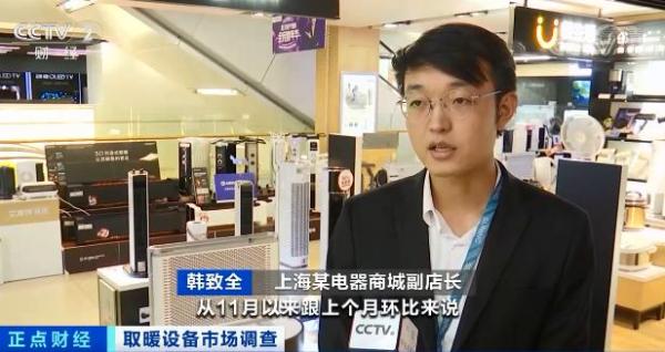 上海某电器商城副店长 韩致全:从11月以来跟上个月环比来说,取暖设备有120%左右的增长,明装采暖、地暖方面有180%左右的增长。