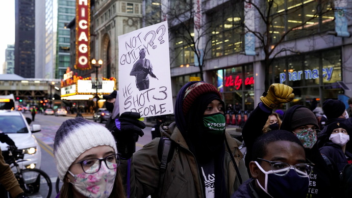 当地时间20日,部分民众在伊利诺伊州芝加哥市继续举行抗议活动,反对里滕豪斯的无罪判决。抗议者们高呼口号,呼吁美国司法部对里滕豪斯的判决结果进行调查。有抗议者表示,他们对判决结果感到非常失望,这是对公正的歪曲。还有抗议者表示,判决结果就是“对白人至上主义的恐怖活动开绿灯”。
