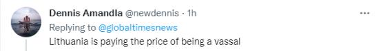 在《环球时报》英文版相关推文下方,有外国网友指出,“立陶宛正在为成为附庸而付出代价。”