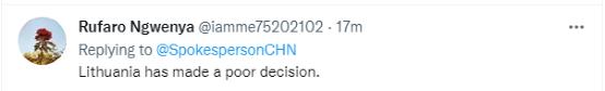 在中国外交部发言人华春莹的相关推文下方,也有不少网友就此事发表自己的见解。对于立陶宛的最新举动,有外国网友也直言不讳称,“立陶宛做出了一个糟糕的决定。”