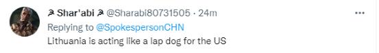 也有网友也提到,“立陶宛就像美国的哈巴狗一样。”