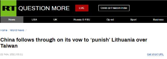 中方的这一行动迅速引发世界媒体关注。“中国兑现了在台湾问题上惩罚立陶宛的誓言”,“今日俄罗斯”(rt)21日以此为题报道称,北京宣布将中立两国外交关系降为代办级。
