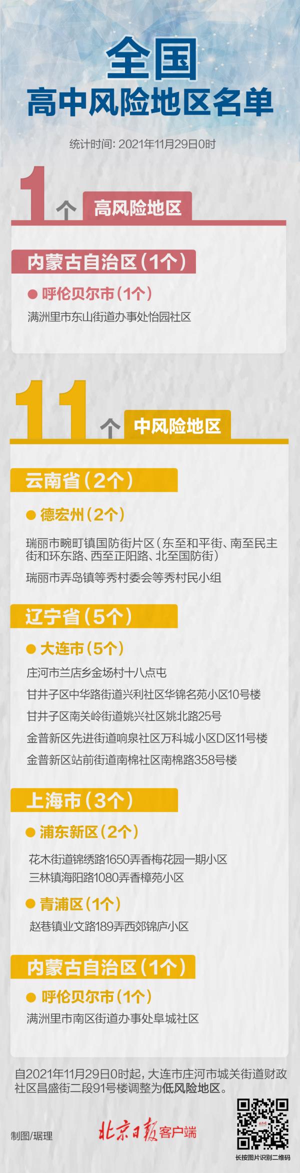 目前,全国共有高中风险区1+11个,分布在4个省区市。