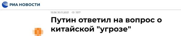 当地时间11月30日,俄罗斯总统普京出席“俄罗斯在召唤”年度国际投资论坛。据俄新社报道,普京当天在论坛上回击所谓“中国威胁论”时有一段精彩表述。