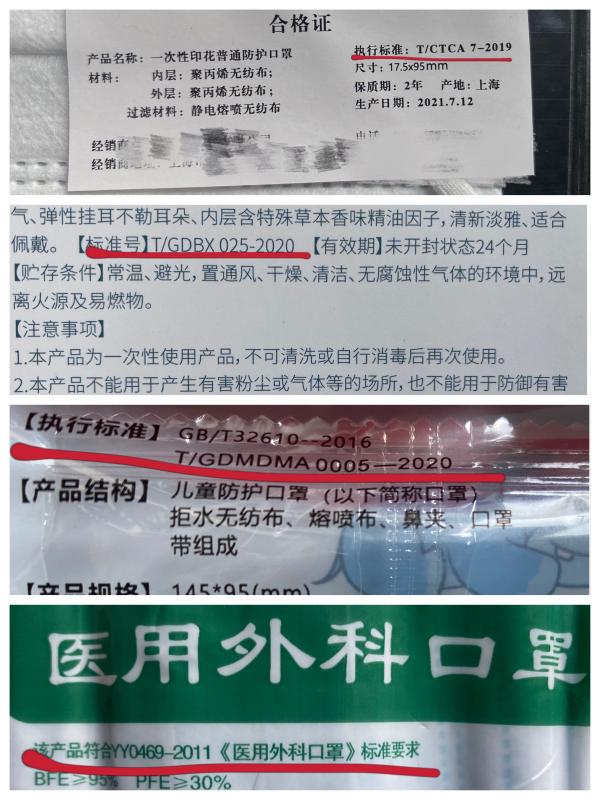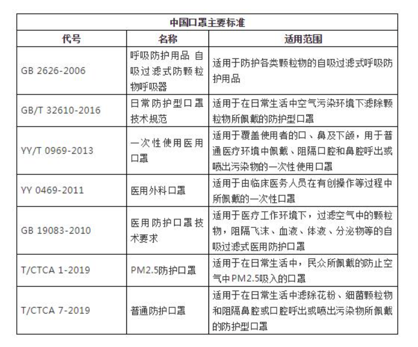 我国常见的口罩生产标准↓↓↓