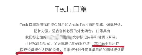 一款售价千元的新面料口罩在产品说明中明确,该口罩不能用作医疗设备或个人防护设备↓↓↓