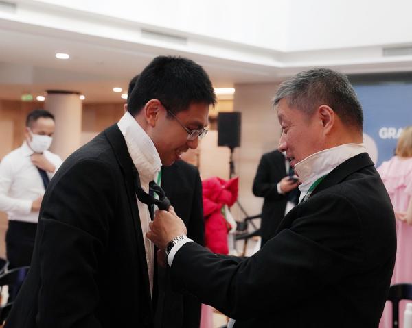 在上汽集团从事行政管理工作的虞健,本是“工作坊”海选现场的业余评审,听了大家的演唱,虞健一“冲动”,当场报名,最终入选成为学员之一。过去两个月,虞健下班回家忙完了就练唱,一天也不敢偷懒。“我唱的时候儿子也跟着我唱,现在他也会唱《饮酒歌》。登上大剧院的舞台是我们每个学员的梦想,现在终于在台下亲友的见证下圆梦了。”