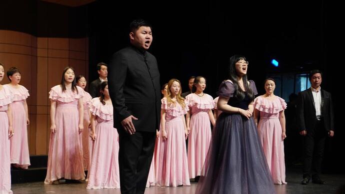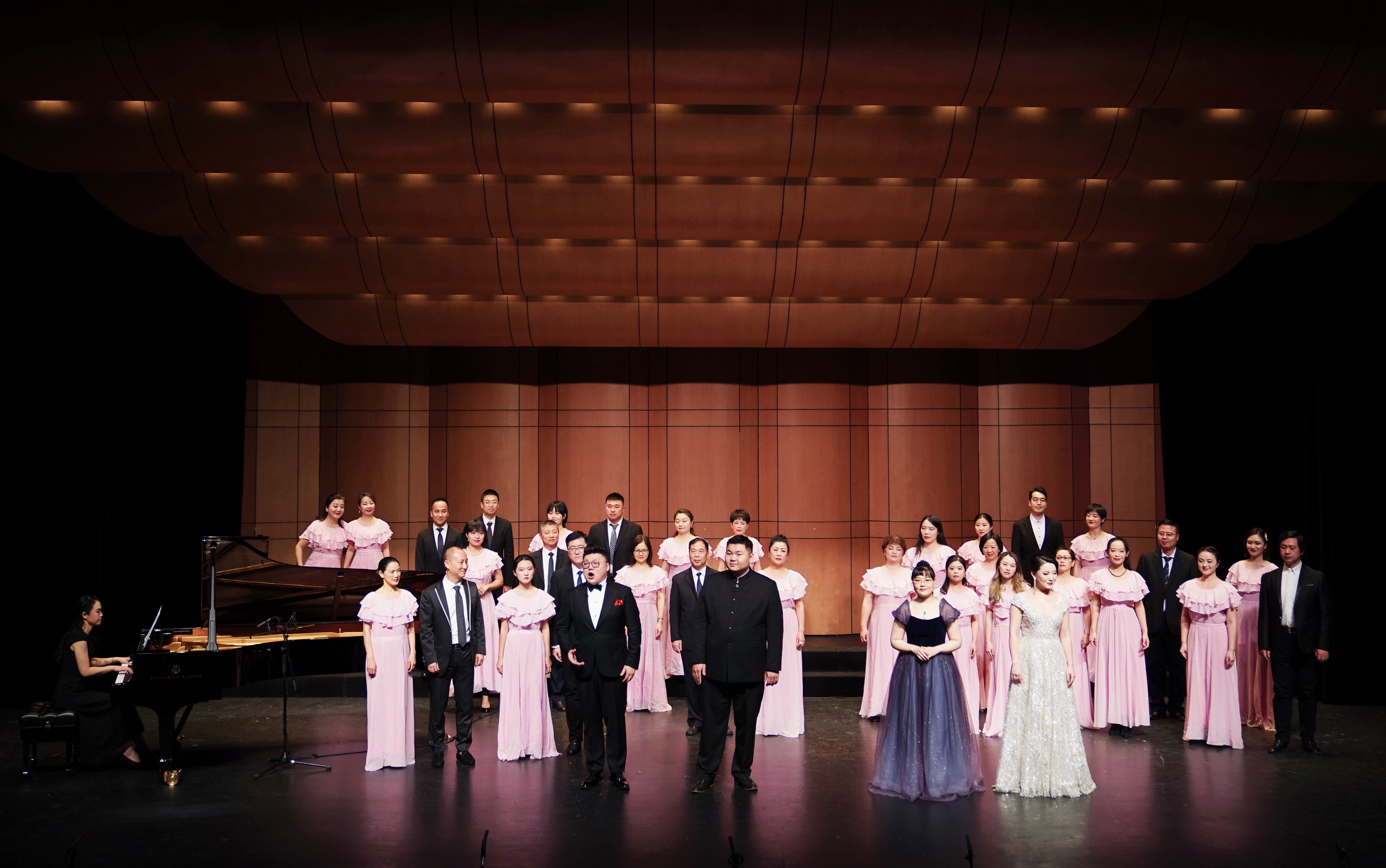 《饮酒歌》演出现场,34位学员与歌唱家韩蓬、宋倩同台