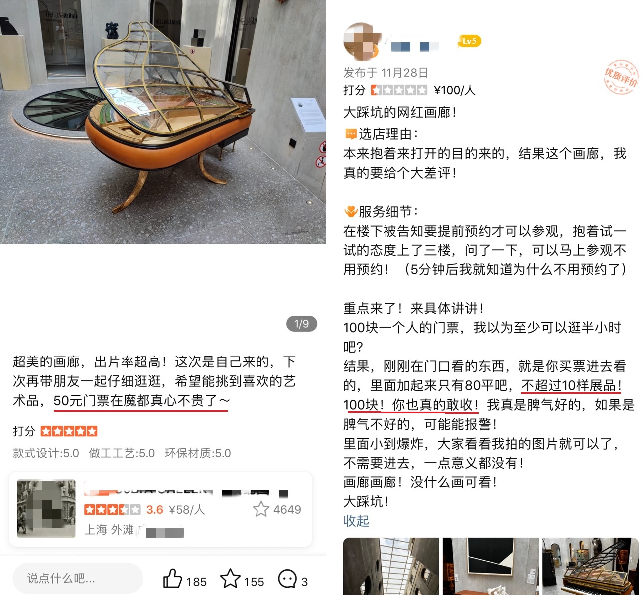不过在一些热衷网上“探店”“分享”的人看来,这些画廊和展览场所允许网红拍照未尝不划算:“网红带动流量,只要网红注明拍摄地点,对画廊来说不亏。”但一些画廊经营者则认为这样的“流量”对自己并无益处:“一个带货网红吸引一堆人来打卡,我们做的展览不还是背景吗?”