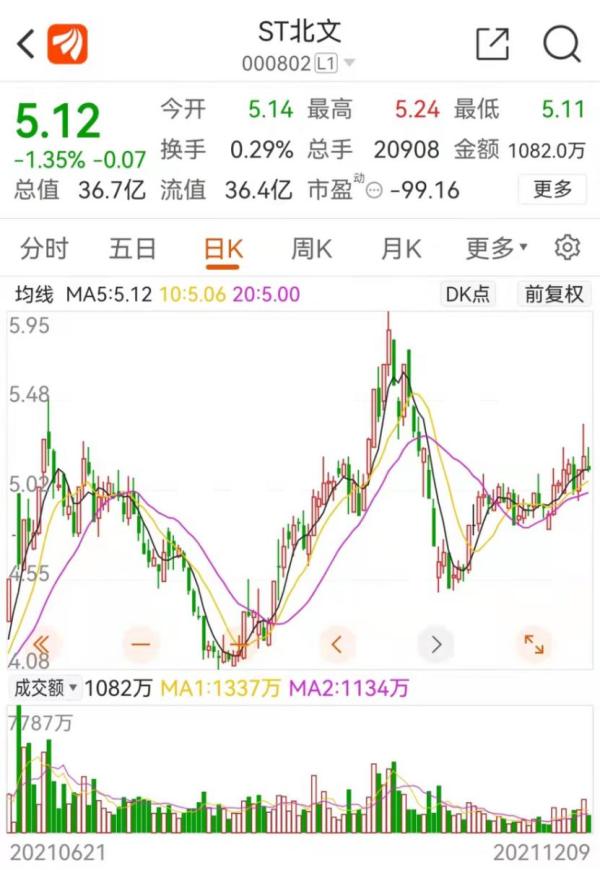 股价方面,2021年以来st北文股价继续走低,截至12月9日收盘,报5.12元/股。今年以来整体跌幅12.78%,最新总市值36.7亿元,较2015年的最高价市值已蒸发近九成。
