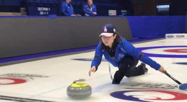 图说:张芷源作为制冰师团队一员,参与加拿大冰壶大满贯赛事。