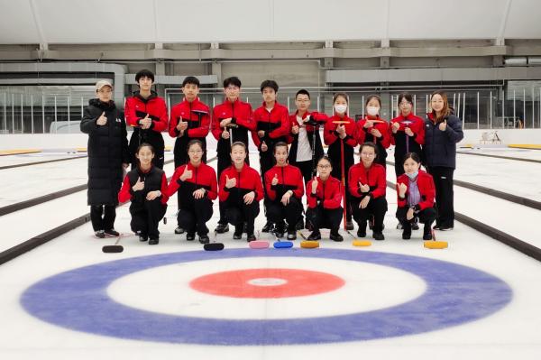 图说:上海青少年冰壶集训队,右一为张芷源。