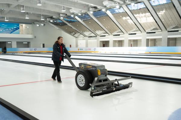 视频里,5条长44.5米、宽4.75米的冰壶赛道呈现眼前,张芷源不时进场测量冰温、修冰、打点……这个场地,是她和同事们仅仅用了7天,连续熬了几个通宵制作而成——这是上月正式交付的“冰立方”冰上运动中心,北京冬奥会和冬残奥会期间,该场地将作为赛时体育体验中心,提供以冰壶项目为主的体验服务,成为冬奥盛会举办时的一大看点。