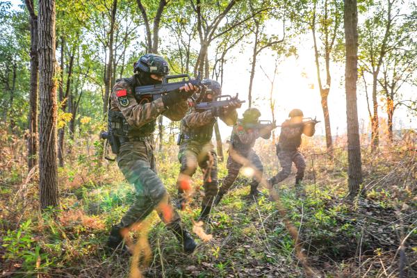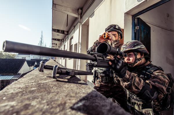 夜间摩托化机动100公里后,特战大队全员于预定地域集结完毕。侦察组采取远程红外夜视仪侦察和抵近侦察相结合的方法实施侦察;突击组占领楼顶和应急通道,随时做好突击准备;狙击组占领有利位置,听指令对嫌犯实施狙击……特战一中队刘伦龙队长在勘察地形后,迅速向副支队长做了汇报。
