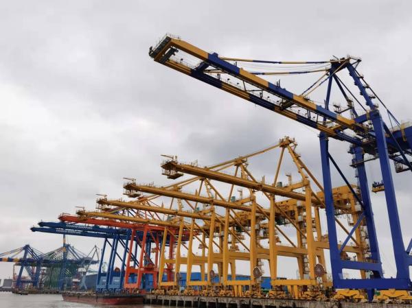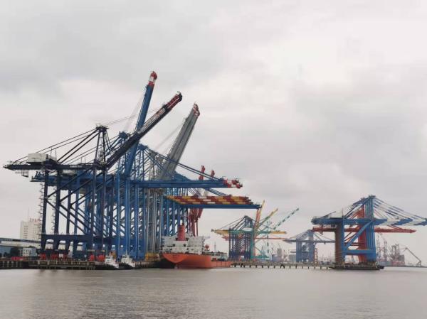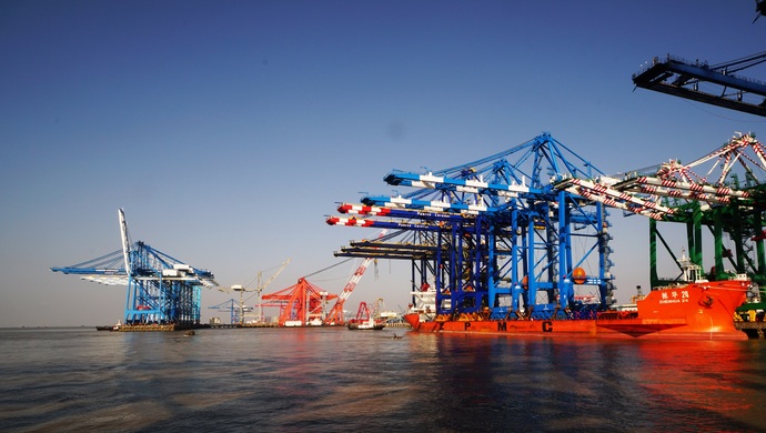 上海长兴岛,振华重工长兴分公司三号外码头边寒风呼啸,空气中星星点点的雪花肆意飞舞,数十台高五六十米、重千余吨的岸边集装箱起重机整齐列队,如同一排将长爪伸向大海、内蕴千钧之力的钢铁巨兽。