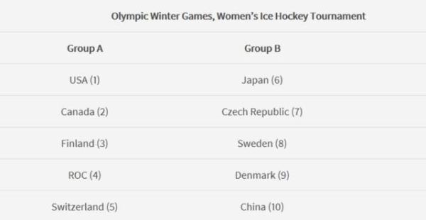北京冬奥会女子冰球项目共有 10 支队伍参加,中国队与日本队、捷克队、瑞典队、丹麦队分在 b 组,该组前三名将与 a 组 5 支队伍一同进入 8 强。