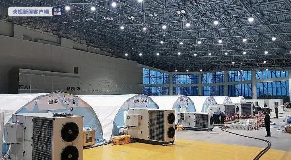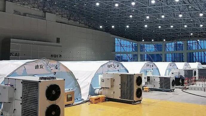 2月17日下午3点半起,苏州市吴江区人武部组织的40多名民兵在盛泽国际会展中心执行物资搬运和搭建任务。在进行了20多个小时的设备安装、耗材准备、场内消杀等工作后,2月18日,一批气膜移动实验室达到运营标准,正式投用。