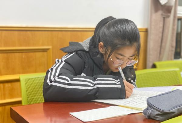 梅陇中学女足队员在认真写作业 侍佳妮摄